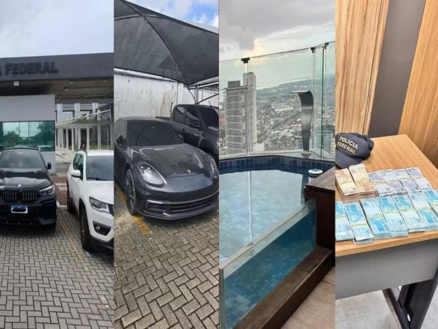 Ao todo, foram apreendidos cinco carros, sendo quatro de luxo, R$ 153.865 e U$ 8.100 em espécie, documentos, dispositivos eletrônicos e outros bens.